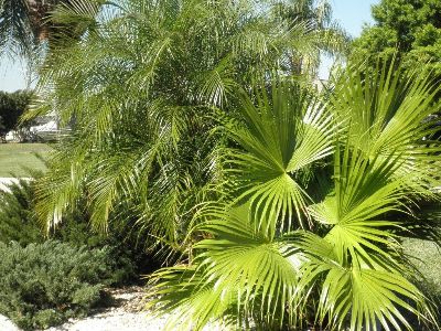 sehr schöne, gepflegte Gärten mit Palmen und Beetanlagen