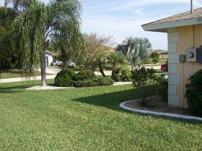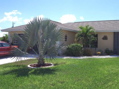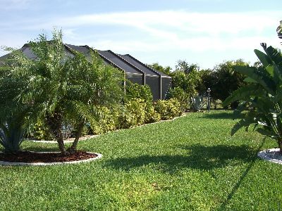 Gartenansicht Haus Sunrise viele Palmen