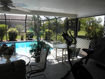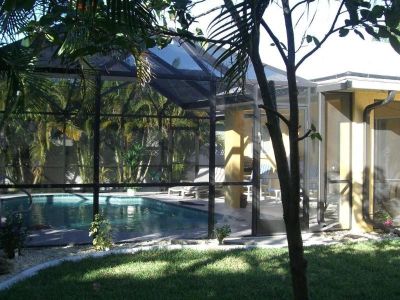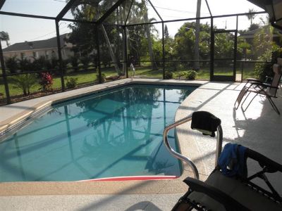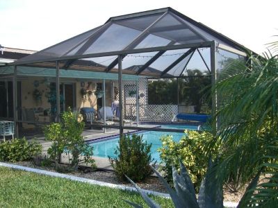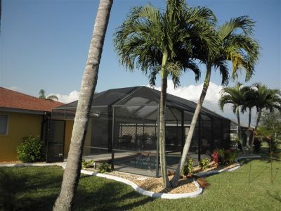 Gartenansicht mit Poolcage Südlage