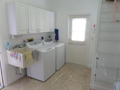 Palmetto Estate.... das ist der Laundryroom mit Waschmaschine, Trockner, Bügelstation, Einbau und Aufbauschränken sowie Handwaschbecken mit Zugang zum Haus zur Garage oder nach draußen Die Ausstattung in allen unseren Häusern ist vergleichbar.